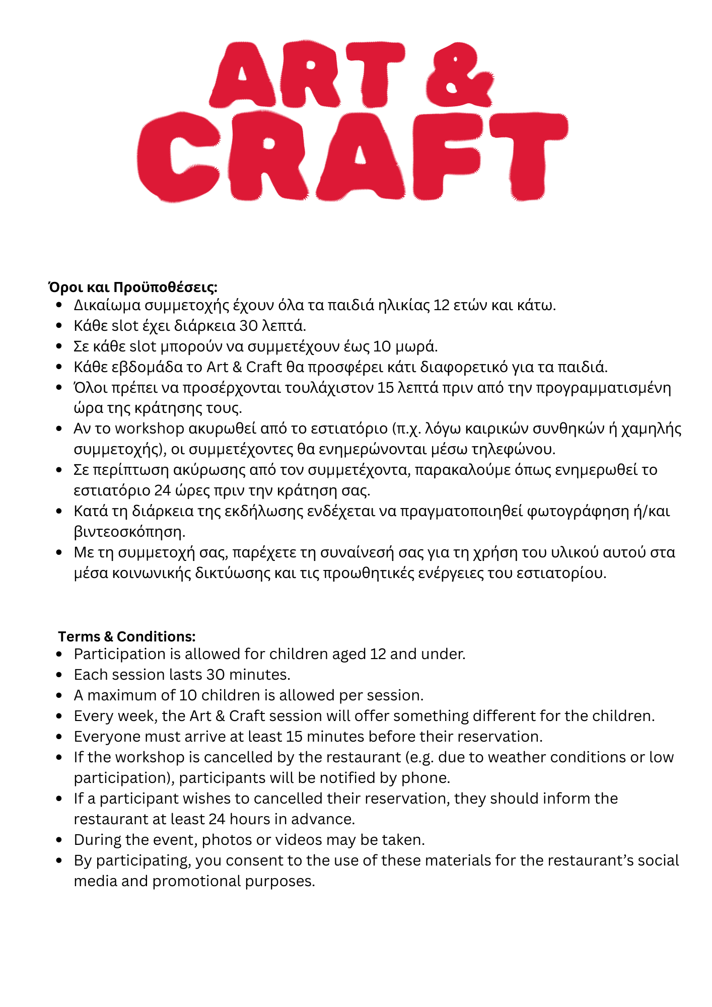Our Art & Craft event is now happening at three of our restaurants, giving kids the perfect chance to get creative, make new friends, and let their imagination run wild!